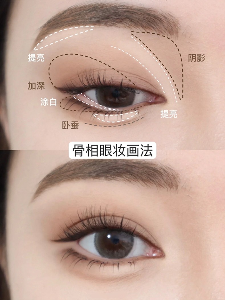 1.每次化妝在眼窩處用淺咖色修容輕輕掃一下,可以把眼睛放大一倍。